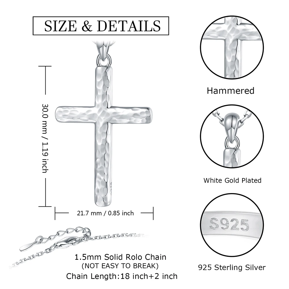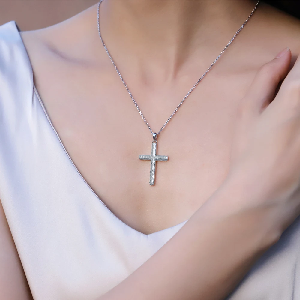 Sterling Cross Necklace is a timeless and meaningful piece of Christian jewelry created to inspire faith, love, and devotion. Crafted from genuine 925 sterling silver, it offers long-lasting shine, durability, and comfortable wear for everyday use. The hammered cross pendant features a unique textured finish that gives the necklace a handcrafted, elegant appearance. Its minimalist design allows it to be worn alone as a statement of faith or layered with other necklaces for a modern look. Lightweight and gentle on the skin, it is perfect for daily wear, church services, or special occasions. The cross symbolizes hope, strength, and spiritual guidance, making this necklace deeply inspirational. It pairs beautifully with both casual outfits and formal attire. This necklace makes a heartfelt gift for women of all ages, including friends, daughters, mothers, or loved ones. Ideal for birthdays, Christmas, confirmations, baptisms, or meaningful milestones, it carries lasting emotional value. The quality craftsmanship ensures the pendant maintains its beauty over time. Choose this sterling silver cross necklace to share faith, encouragement, and timeless elegance in one meaningful accessory.